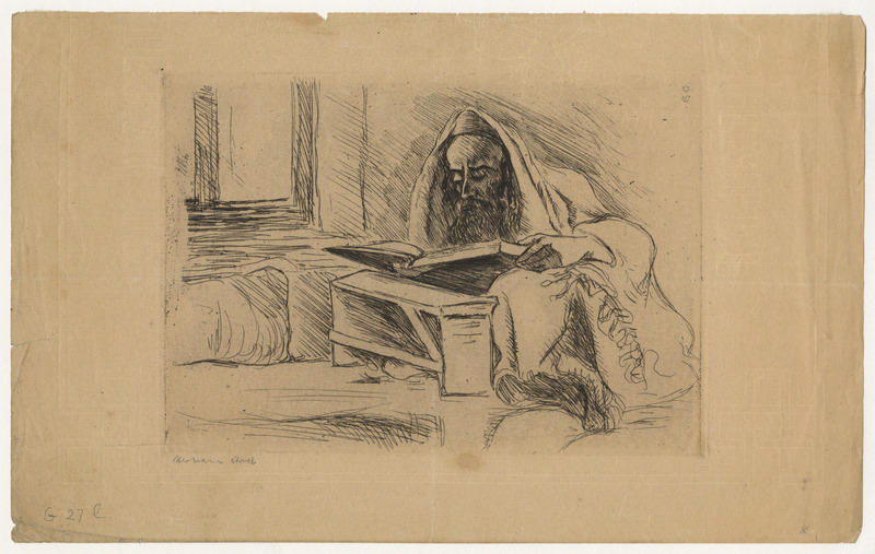 Hermann (Chaim Aaron ben David) Struck was born in 1876 in Germany. He is best known as a master etcher, lithographer and early Zionist. He studied for five years at the Berlin Academy and in 1908 wrote "Die Kunst des Radierens" (The Art of Etching), while mentoring artists such as Marc Chagall, Max Liebermann and Lesser Ury. His art was included in an exhibition at the Fifth Zionist Congress and he helped establish the religious Zionist movement called Mizrachi. Struck was an Orthodox Jew but believed that culture and religion could thrive cooperatively in the Land of Israel. He emigrated to Haifa where he created an artistic community and participated in the development of the Tel Aviv Museum and the Bezalel art school in Jerusalem. Hermann Struck died in 1944.