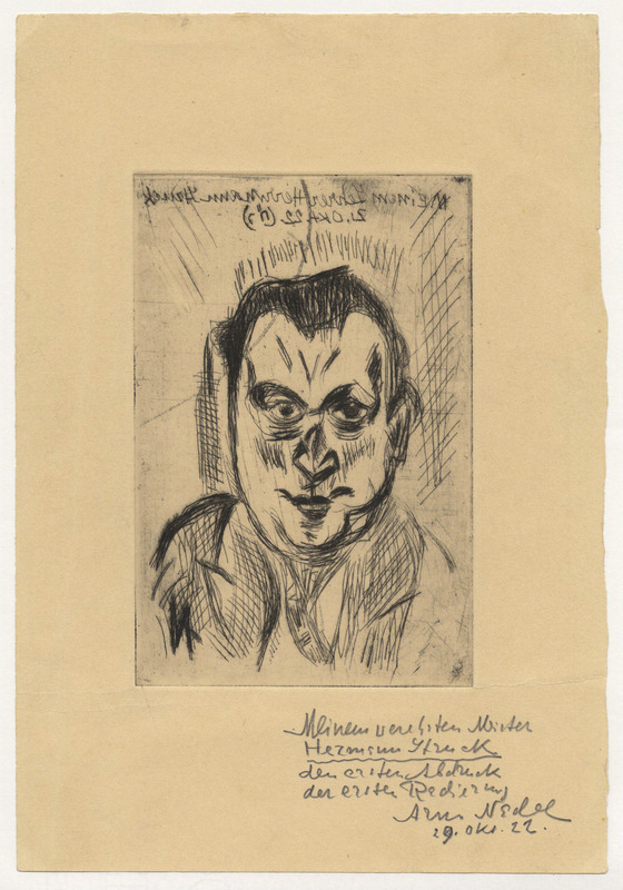 Nadel, Arno: Arno Nadel : Self-portrait with a dedication to Hermann Struck, Leo Baeck Institute, 78.586.