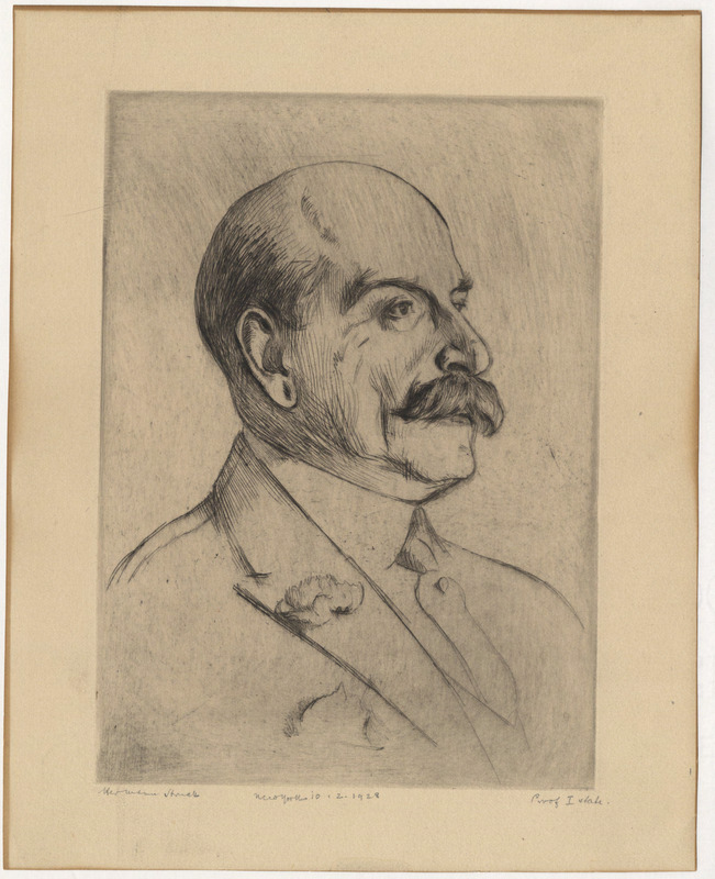 Hermann (Chaim Aaron ben David) Struck was born in 1876 in Germany. He is best known as a master etcher, lithographer and early Zionist. He studied for five years at the Berlin Academy and in 1908 wrote "Die Kunst des Radierens" (The Art of Etching), while mentoring artists such as Marc Chagall, Max Liebermann and Lesser Ury. His art was included in an exhibition at the Fifth Zionist Congress and he helped establish the religious Zionist movement called Mizrachi. Struck was an Orthodox Jew but believed that culture and religion could thrive cooperatively in the Land of Israel. He emigrated to Haifa where he created an artistic community and participated in the development of the Tel Aviv Museum and the Bezalel art school in Jerusalem. Hermann Struck died in 1944.