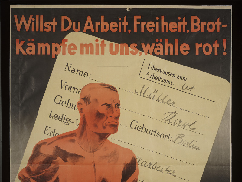 KPD Poster, "Willst Du Arbeit, Freiheit, Brot - kämpfe mit uns, wähle rot!", Leo Baeck Institute, 2005.107.
