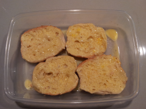 "Arme Ritter" soaking in milk and eggs.