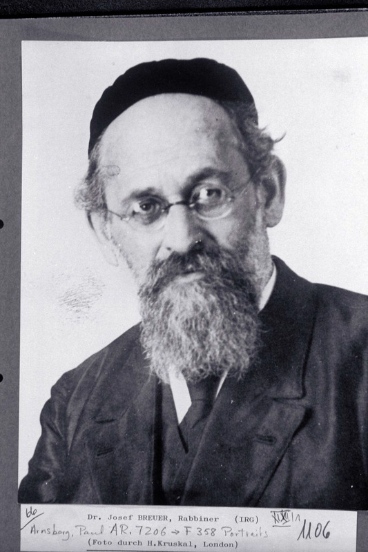 The orthodox rabbi Joseph Breuer – born in Pápa, Hungary in 1882 – was closely related with Frankfurt’s neo-orthodox “Austrittsgemeinde” that had been founded by his maternal grandfather, Rabbi Samson Raphael Hirsch, and his father, Rabbi Solomon Breuer. In 1939, Joseph Breuer and his family escaped Nazi-Germany, settling in New York, where he founded an orthodox congregation for mainly German refugees in Washington Heights, “Khal Adath Yeshurun” (KAJ), which became known as “the Breuer Synagogue”. Rabbi Joseph Breuer died in New York in 1980.