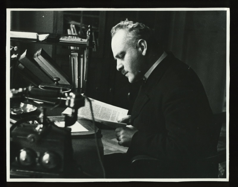 Dr. Max Katten : reading at a desk, Leo Baeck Institute, F 2268.