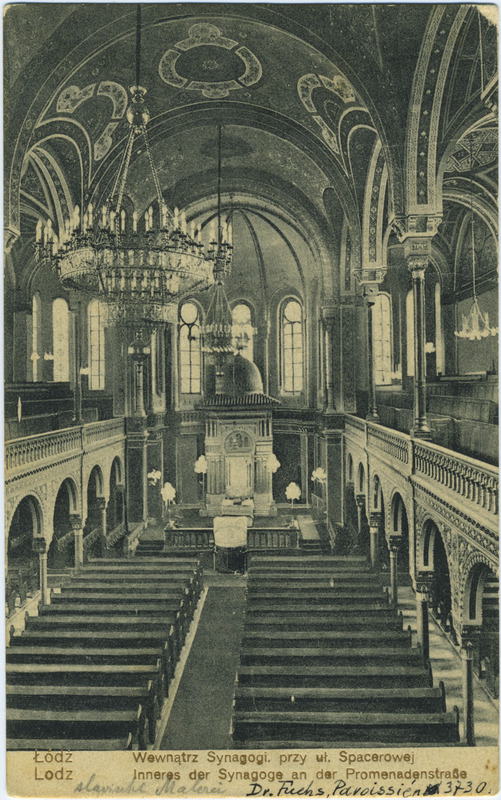 Interior of the synagogue Promenandenstrasse in Lodz, Leo Baeck Institute, F 3575a.