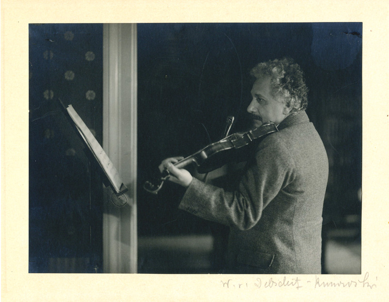 Einstein playing the violin to celebrate his 50th birthday in Berlin, March 14, 1929, Leo Baeck Institute, F 5315.