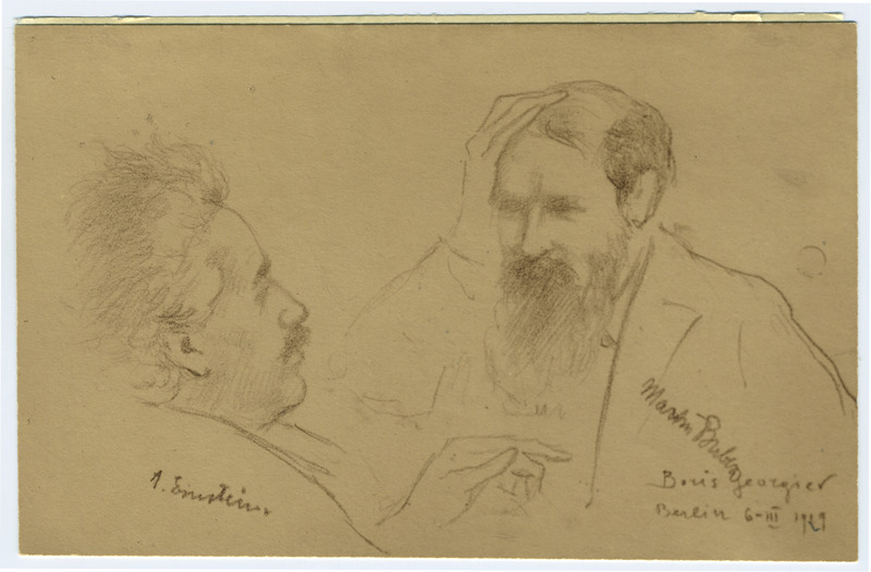 Sketch of Albert Einstein and Martin Buber by Boris Georgiev, Leo Baeck Institute, F 5348A.