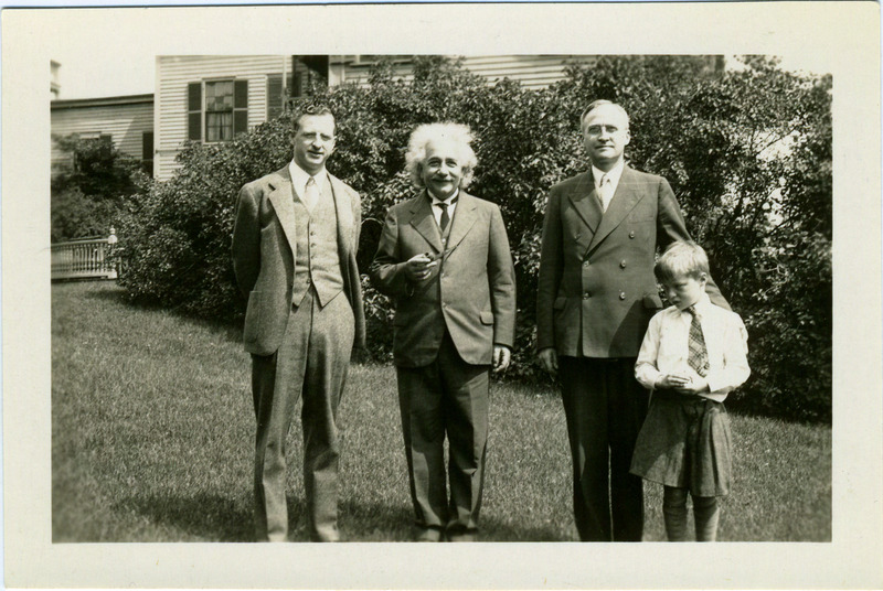 Albert Einstein with Donald Howard Menzel (left), George Birkoff, and Carl Shapley (son of Harlow Shapley) outside Harvard College Observatory; June 21, 1935, Leo Baeck Institute, F 5325D.