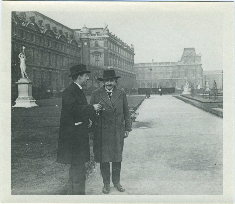 Albert Einstein with unidentified man in Paris, Leo Baeck Institute, F 15435.