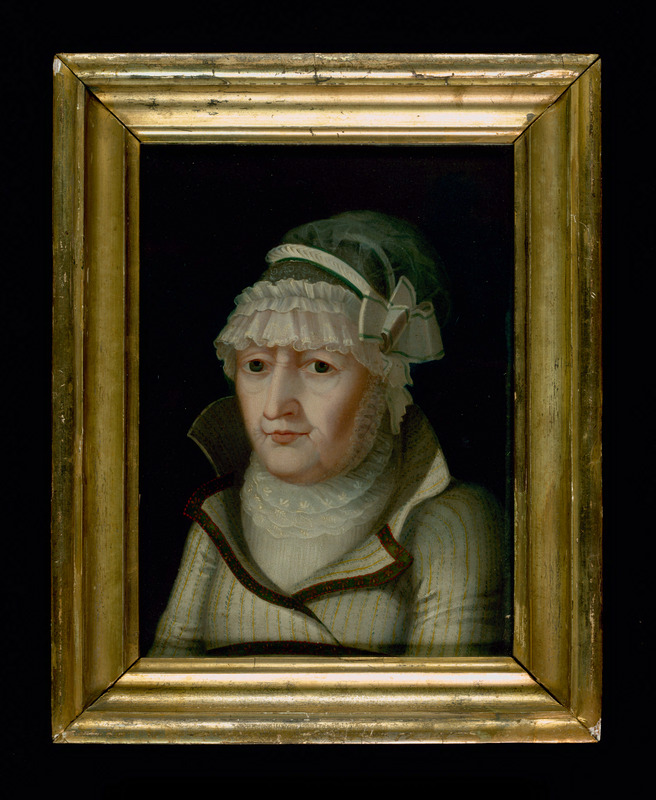 The inscription engraved on the back of the frame (not a signature), gives the name of the painter as: "I.Schroeder, Maler." Since there seems to be no painter by that name active in 1815, if the inscription is correct, it suggests the hand of a goldsmith, Johannes Wilhelm Schroeder, 1784-1847, who worked in Lubeck.