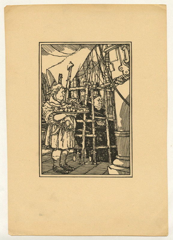 Steiner-Prag, Hugo: [Serving a fat monk in a cage] : Illustration to Tyll Ulenspiegel by Charles De Coster, Leo Baeck Institute, 78.1015.