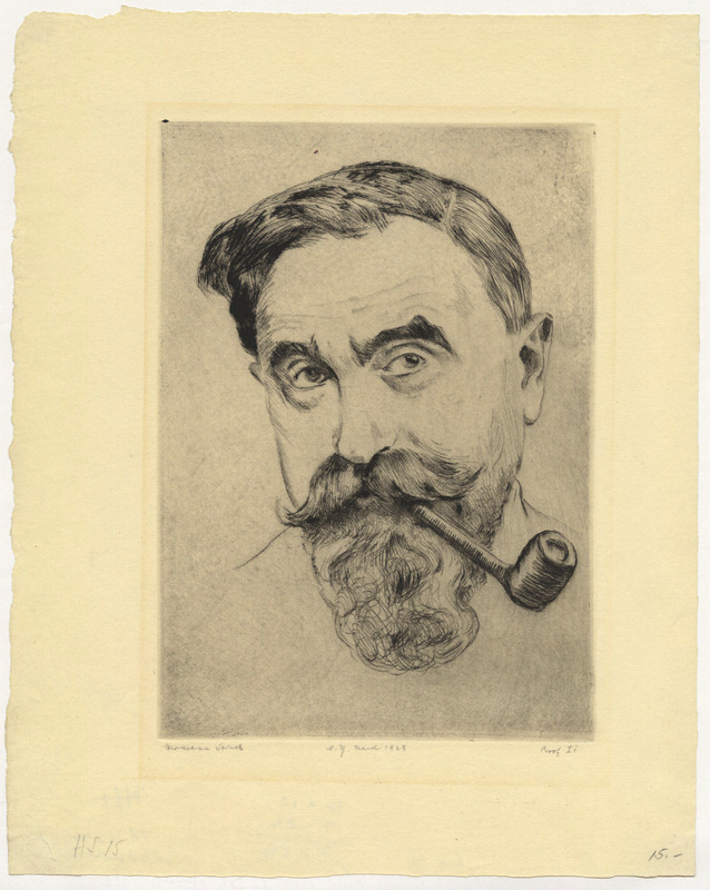 Struck, Hermann: Hermann Struck : Self portrait with pipe, Leo Baeck Institute, 78.1654.