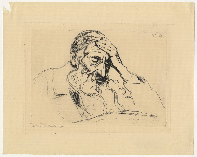 Hermann (Chaim Aaron ben David) Struck was born in 1876 in Germany. He is best known as a master etcher, lithographer and early Zionist. He studied for five years at the Berlin Academy and in 1908 wrote "Die Kunst des Radierens" (The Art of Etching), while mentoring artists such as Marc Chagall, Max Liebermann and Lesser Ury. His art was included in an exhibition at the Fifth Zionist Congress and he helped establish the religious Zionist movement called Mizrachi. Struck was an Orthodox Jew but believed that culture and religion could thrive cooperatively in the Land of Israel. He emigrated to Haifa where he created an artistic community and participated in the development of the Tel Aviv Museum and the Bezalel art school in Jerusalem. Hermann Struck died in 1944.