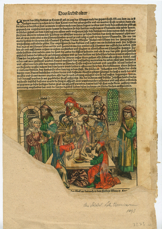 Wolgemut, Michael: [The murder of Simon of Trent] : [Page from Schedel's Weltchronik], Leo Baeck Institute, 78.75.