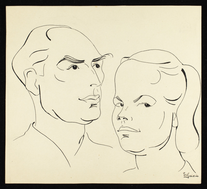 After graduating from a girls' school in Berlin in 1937, Etta began an apprenticeship as a graphic designer, a commitment that she kept even during her imprisonment in Theresienstadt, when she worked at the graphics workshop for the camp’s Jewish self-administration. Like other artists in this group, she managed to covertly make sketches and drawings of her own, documenting her life there. After the liberation of Theresienstadt in early May 1945, Etta worked on repatriating survivors to their home countries. She arranged emigration to England for her mother (who was still living in Berlin), and herself, arriving in London in the fall of 1945, joining Etta's sisters Ulla and Judith and their families. Etta worked as a commercial and freelance lettering artist until emigrating to the United States in November 1949. Her sisters and her mother followed eventually.